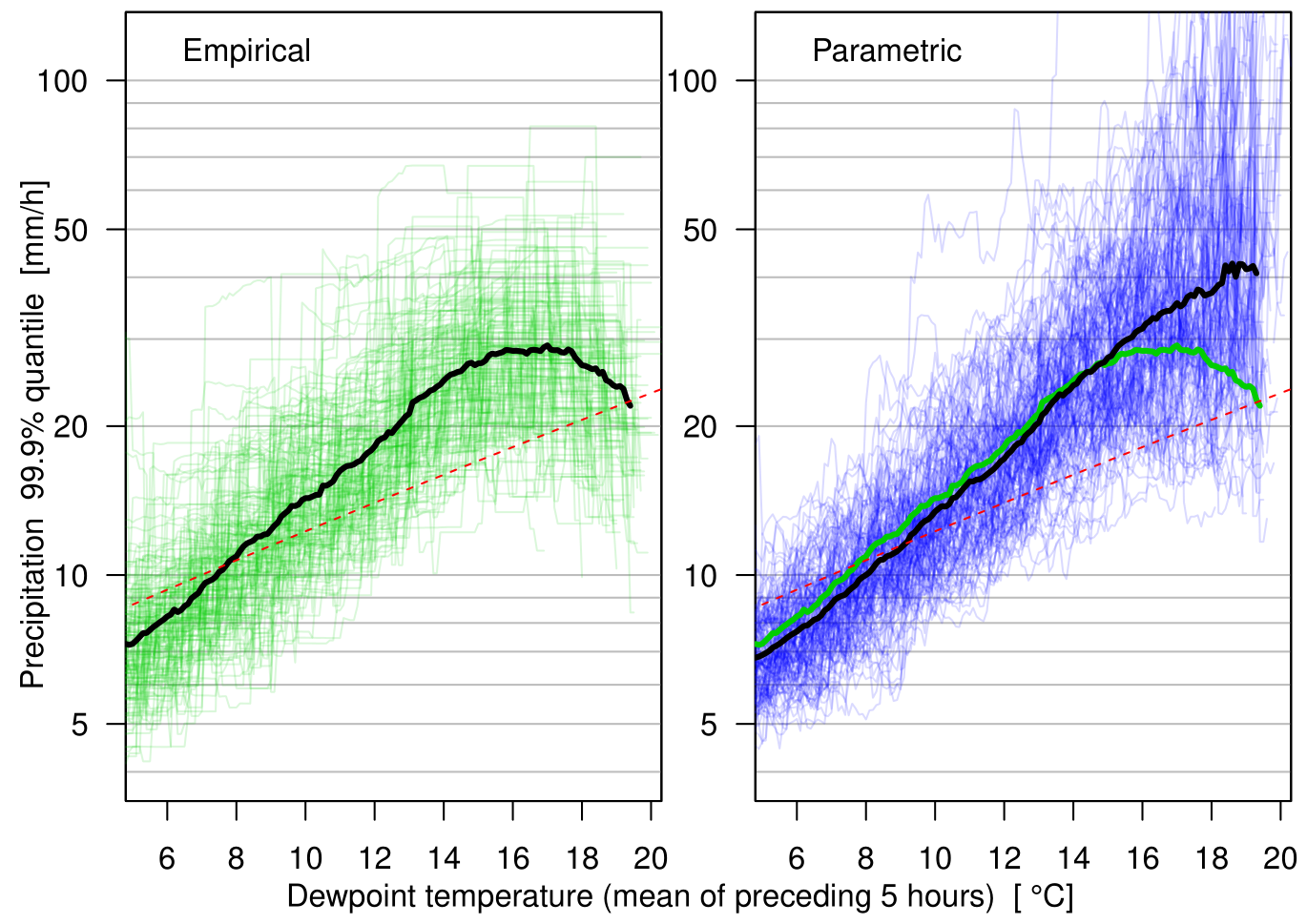 Clausius-Clapeyron scaling holds even for very high temperatures, we just don’t have enough data yet to have observed the expected extreme rainfall intensities.